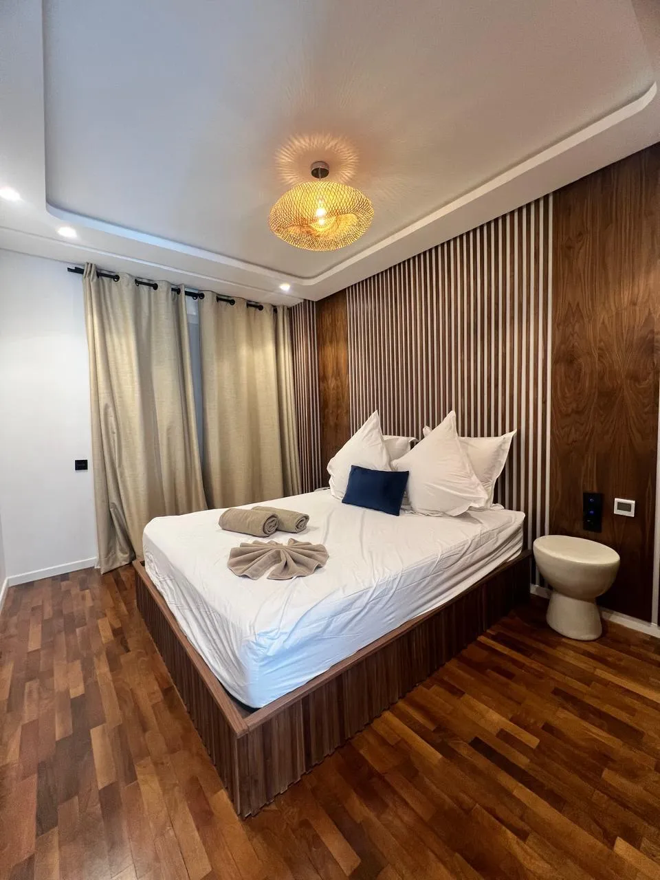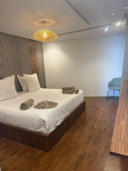✔ Suite parentale avec lit double (200×200), Smart TV, dressing, salle d’eau privative avec WC et accès à la terrasse