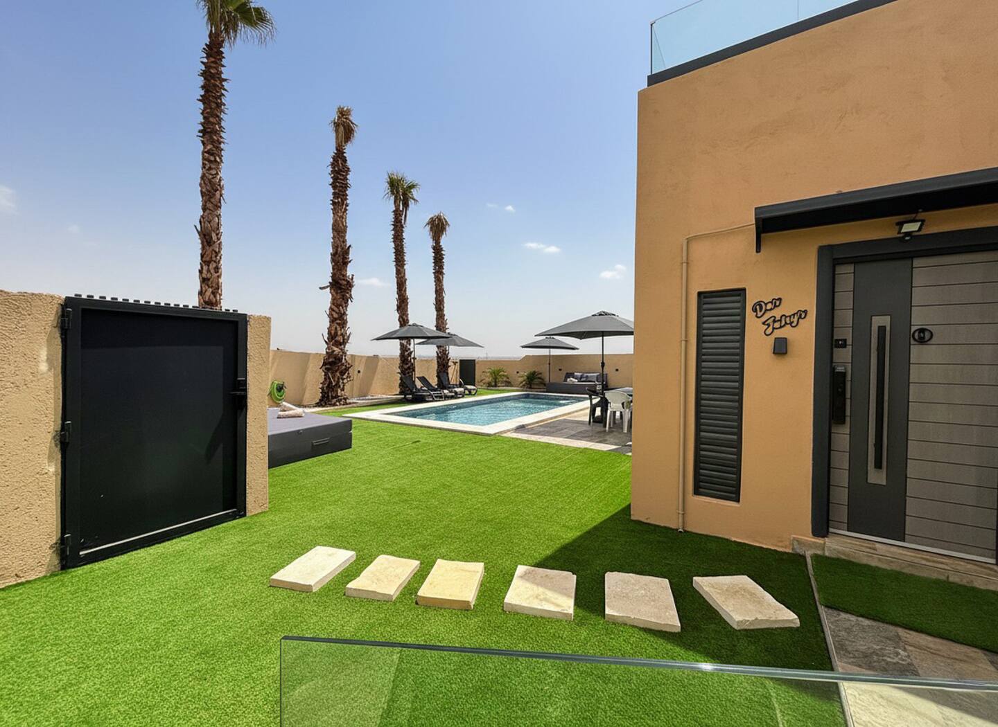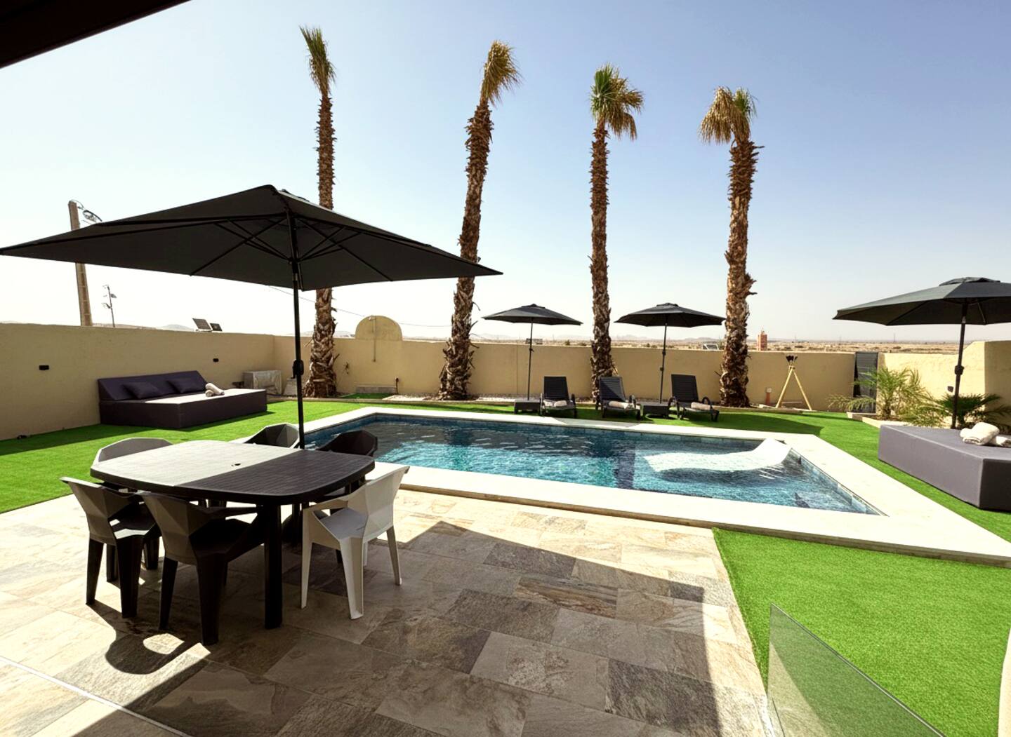 • Piscine privée chauffée entourée de beds XXL et transats, avec parasols, idéale pour profiter du soleil en toute intimité
