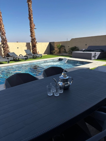 Située à seulement 15 minutes de Marrakech, Route de Casa, la Villa Douar est un véritable havre de paix. Au cœur d’un petit douar authentique, confortable, moderne et entièrement refaite à neuf et équipée, elle vous promet un séjour relaxant avec une belle piscine privée chauffée, rooftop aménagé et tout le confort nécessaire pour vos vacances en famille, en couple ou entre amis.