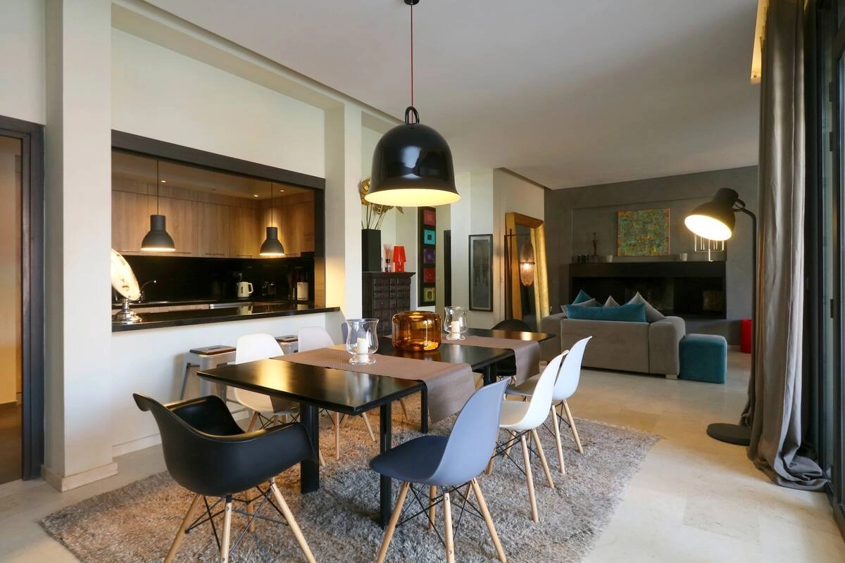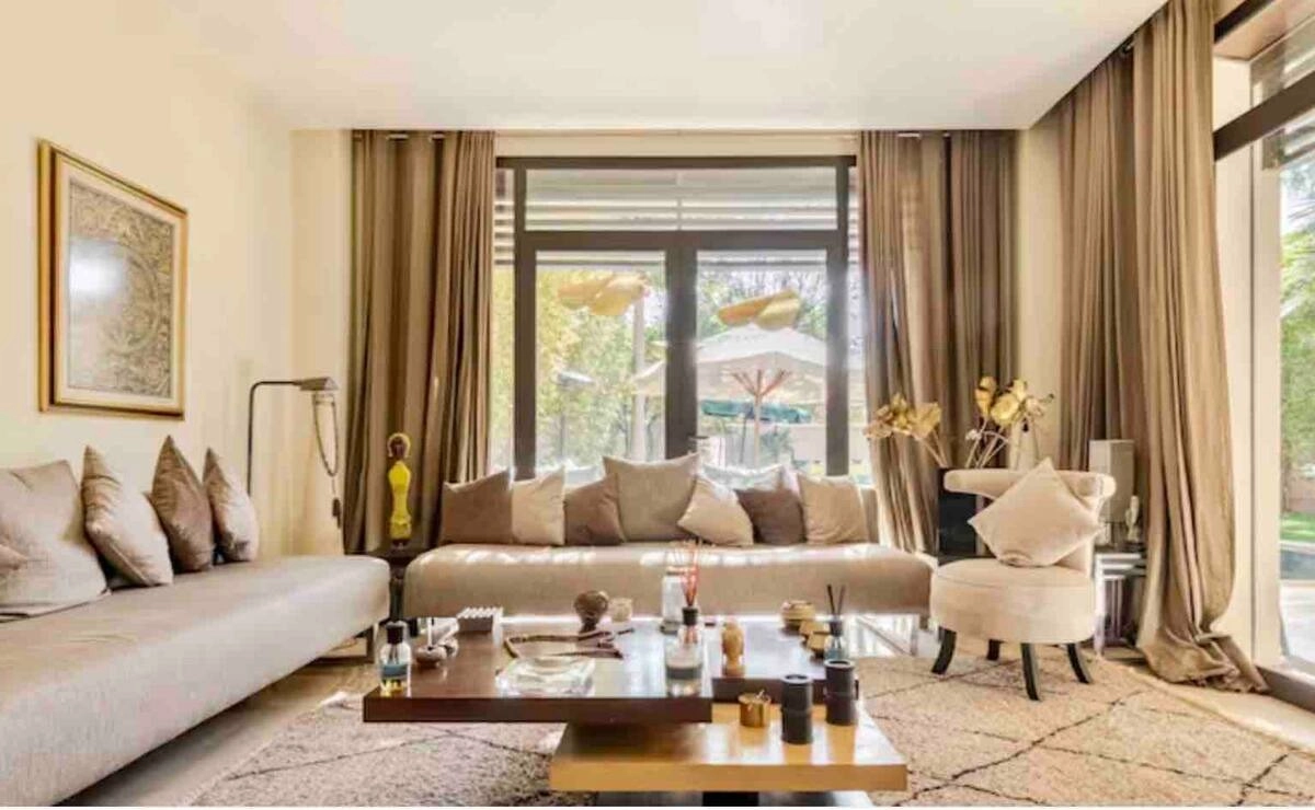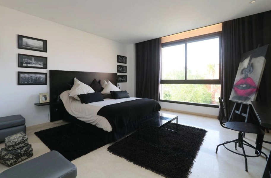 Située dans un environnement prestigieux au cœur du domaine golfique d’El Maaden, à seulement 2 minutes du Mandarin Oriental et 1 minute du Palace Park Hyatt, cette villa contemporaine incarne le raffinement et le confort d’un séjour d’exception à Marrakech.